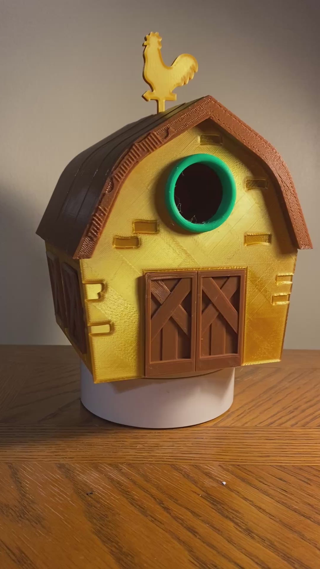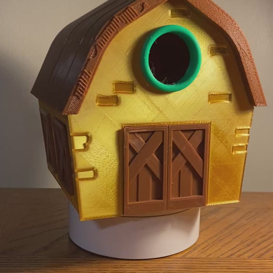 For the countryside birds! This Barn Bird House was designed by STLFlix as part of their Tweet Retreats collection. It is approximately 6 inches long, 6 inches wide and 9 inches tall. It comes with a bottom mount.