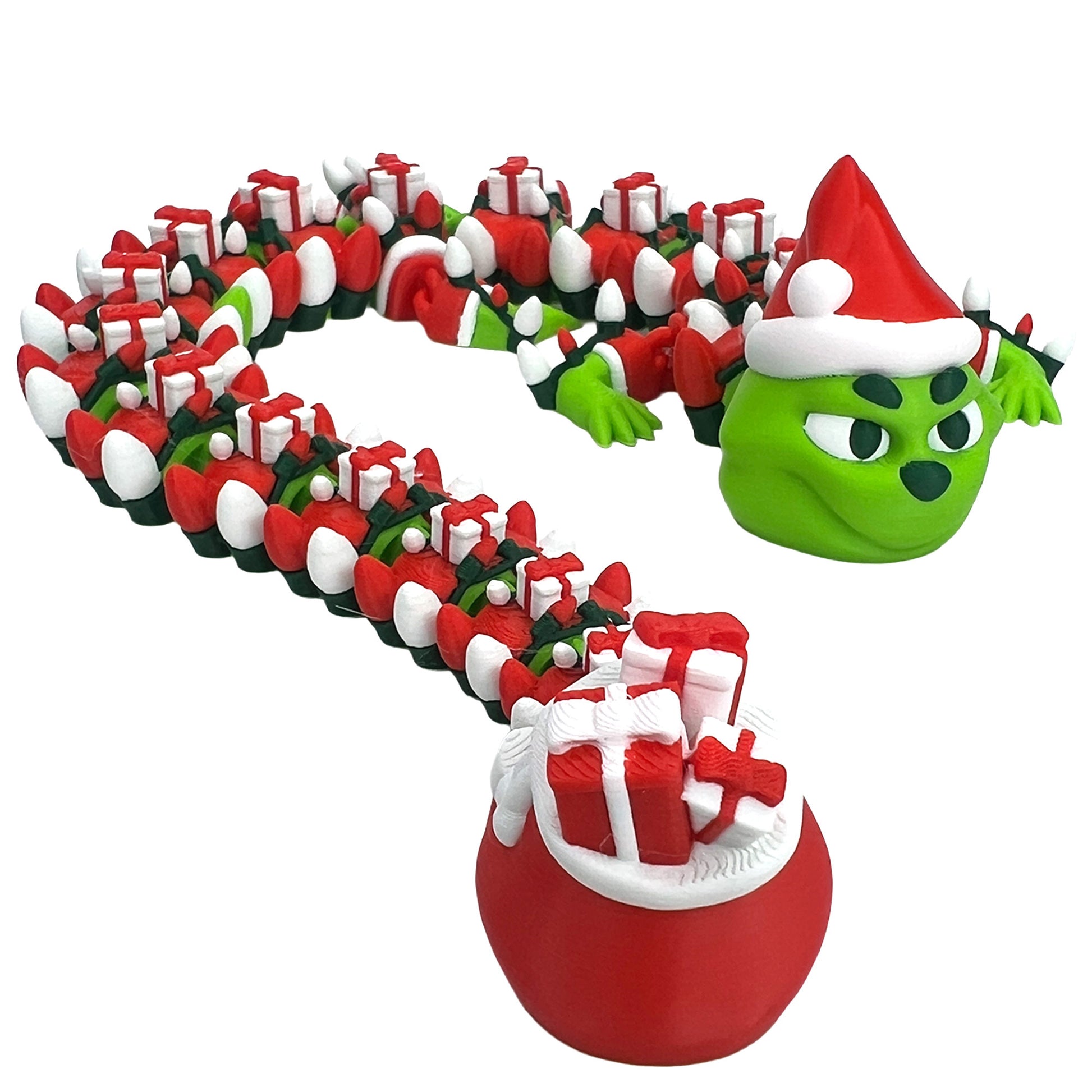 Stealing Christmas never looked this good! The Grinch Christmas Dragon is here to bring a mischievous touch of holiday magic to your collection. Measuring approximately 17.5 inches long, this 3D printed masterpiece captures the perfect blend of festive flair and playful charm.