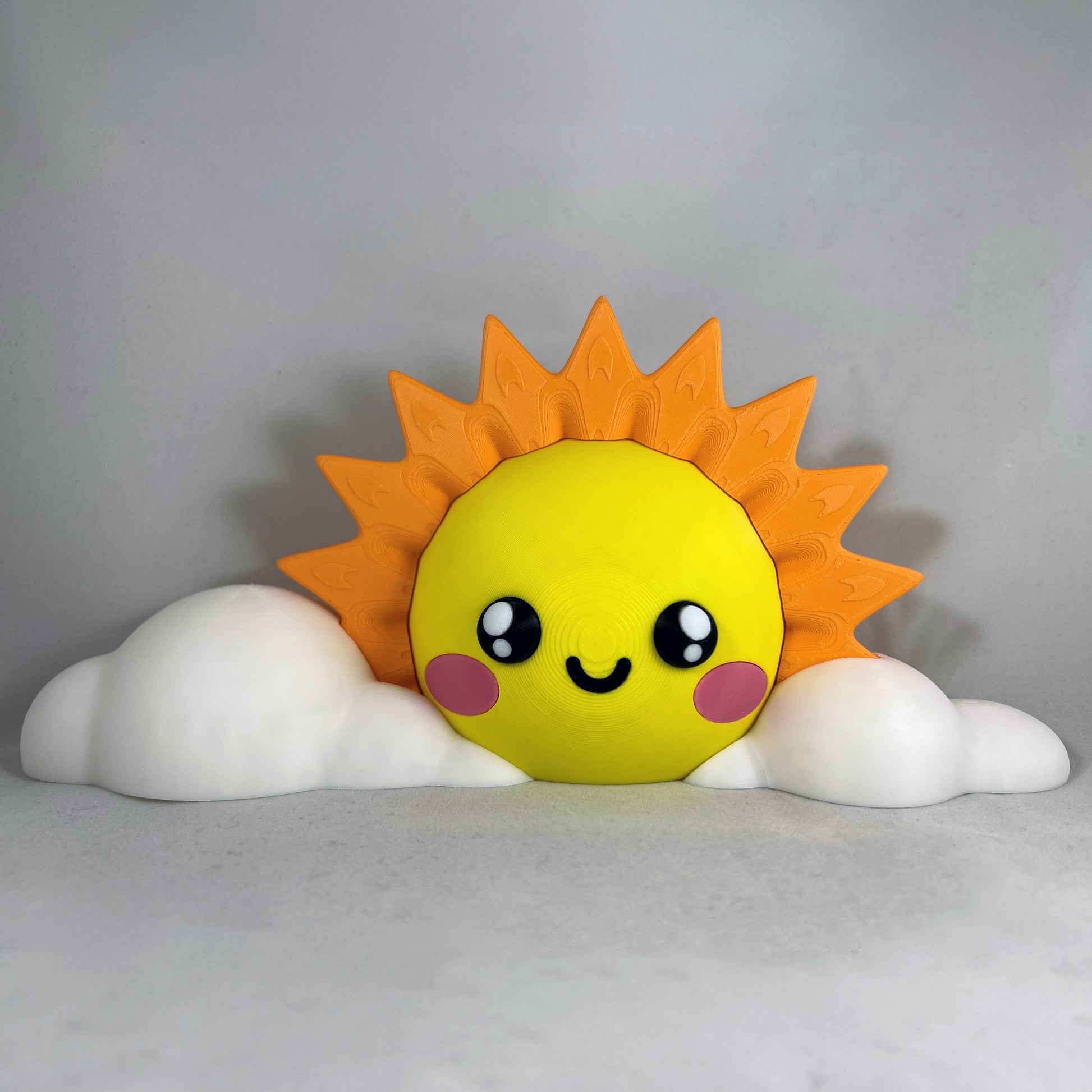 Whether you're decorating your home, brightening up your workspace, or offering adorable prints in your shop, this Kawaii Sun and Clouds model is guaranteed to make anyone smile. Colors may vary slightly, giving each piece its own unique charm.