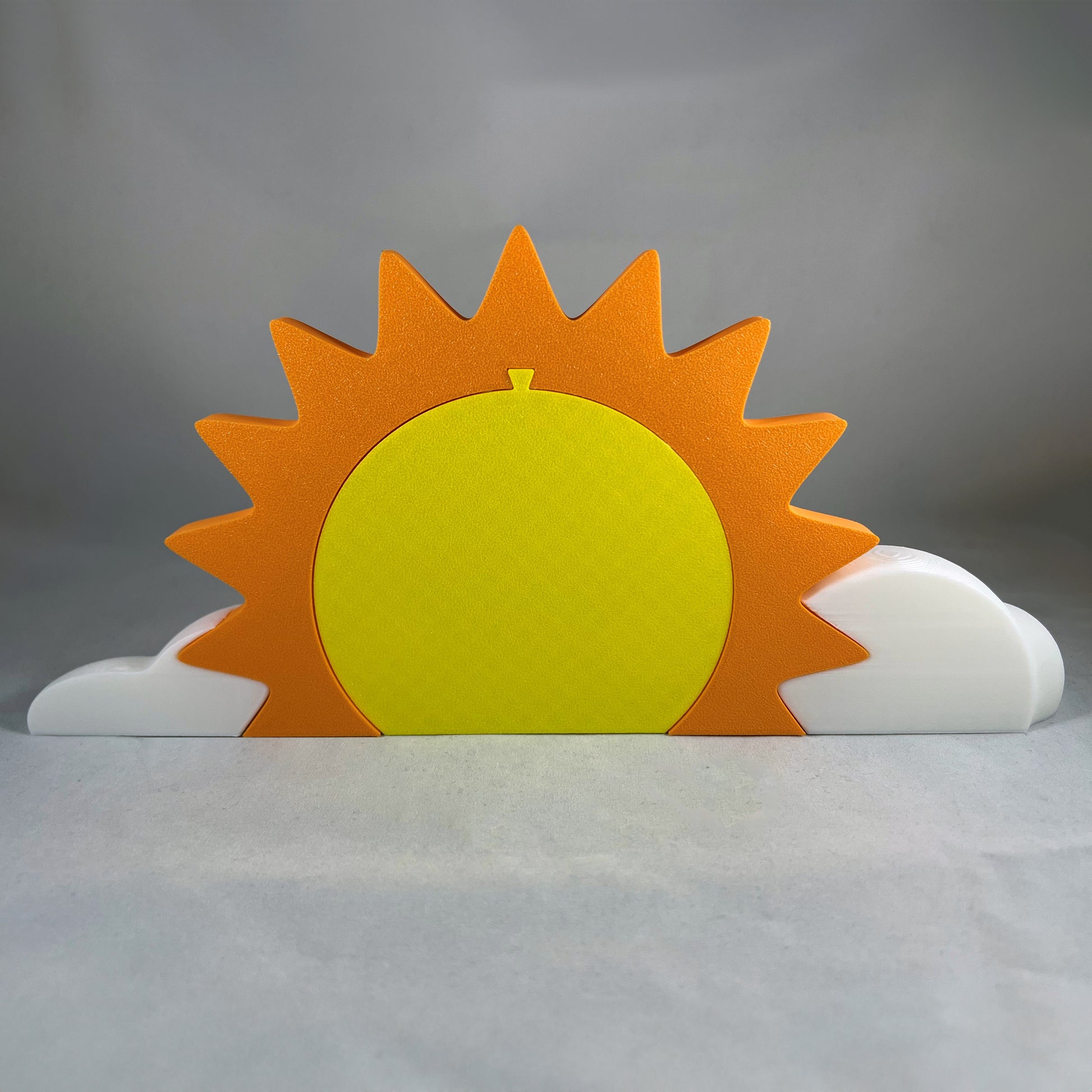 Bring warmth, joy, and irresistible charm to any space with this adorable Kawaii Sun and Clouds figurine! 3D printed with smooth, rounded details and a cheerful expression, this piece radiates happiness wherever it's displayed. Measuring approximately 4.7" x 10.4" x 1.8", it’s the perfect size for nurseries, office desks, craft rooms, or anywhere that needs a little extra sunshine.