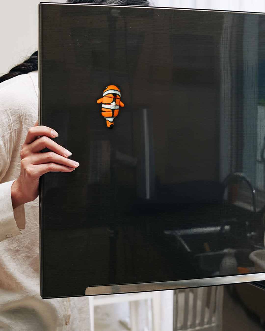 Not a funny clown but an adorable fish! This set of two clownfish include a large clownfish that is approximately 5” long, 2.5” tall and 3.5” wide and a magnet that is approximately 2.5” long, 1.5” tall and 2” wide. They were designed by StLFlix.