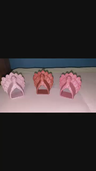 The turkey ring napkin holders would serve as an excellent enhancement to your Thanksgiving table setting. Each holder measures 3 inches in height and 3 inches in width.