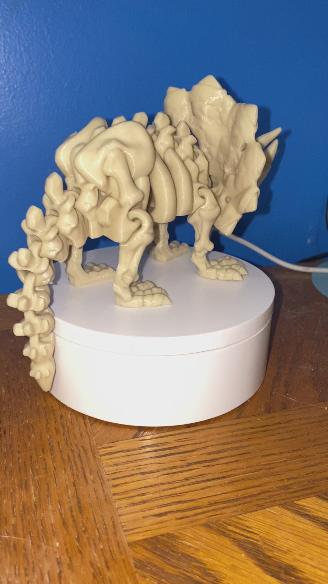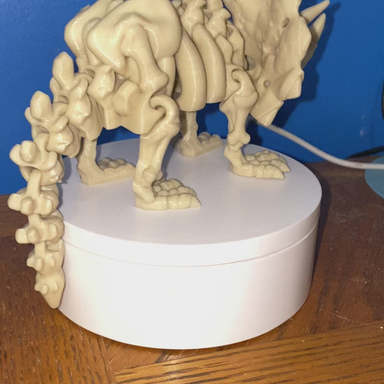 We are pleased to introduce the Skeleton Triceratops, a fully articulated collectible that combines both charm and versatility. Crafted by the talented team at Flexi Factory, this delightful piece stands 3.5 inches tall, measures 3.5 inches wide, and spans 9 inches in length, making it an ideal gift for any dinosaur enthusiast. The Triceratops is available with an optional stand in elegant black or warm brown, and you also have the option to select the color of the Triceratops itself.