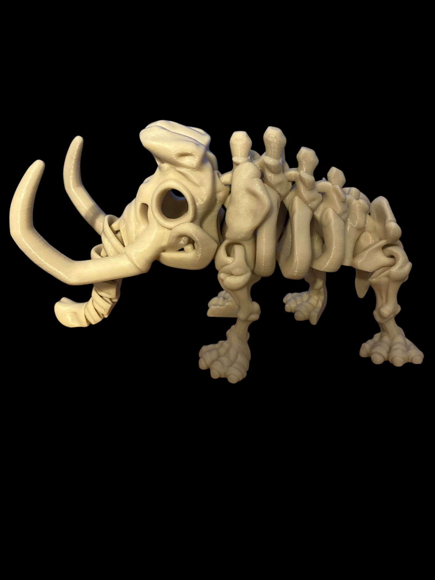 We are excited to present the Skeleton Mammoth, a delightful and fully articulated collectible that showcases impressive flexibility. Designed by the talented team at FlexiFactory, this charming piece measures 4 inches in height, 2 inches in width, and 9 inches in length, making it a wonderful gift for any dinosaur enthusiast. It includes a stylish 5.5-inch stand, available in either classic black or warm brown, and you have the option to choose the color of the Mammoth itself.