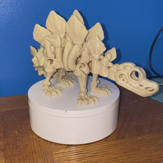 We are pleased to introduce the Skeleton Stegosaurus, a beautifully designed and fully articulated collectible that combines charm and flexibility. Crafted by the skilled team at Flexi Factory, this delightful piece measures 4 inches in height, 2.5 inches in width, and 10 inches in length, making it an excellent gift for any dinosaur enthusiast. The Stegosaurus also features an optional stand available in sophisticated black or warm brown. Additionally, you can select the color of the Stegosaurus to suit your preference.