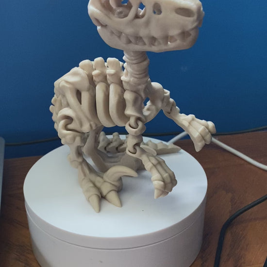 I would like to share this delightful Skeleton T-Rex collectible. It is not only charming but also fully articulated and flexible, making it a unique addition to any collection. Created by the skilled team at Flexi Factory, this item stands at 5.5 inches tall, measures 2.5 inches wide, and spans 9 inches in length. It would make a wonderful gift for any dinosaur enthusiast. Additionally, it includes a choice of a 5.5-inch stand available in either a classic black or a warm brown finish. You also have the option to select the color of the T-Rex itself.